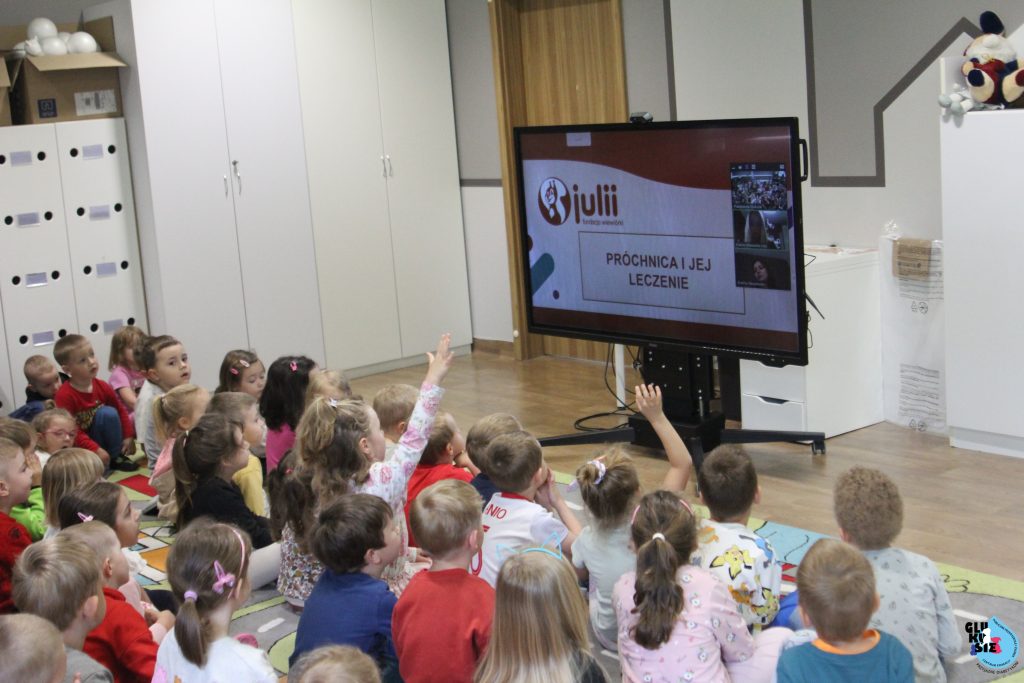 Dziękujemy serdecznie pani Weronice za zaangażowanie i cenną lekcję oraz Fundacji Wiewiórki Julki. Mamy nadzieję, że zdobyta wiedza zaowocuje pięknymi i zdrowymi uśmiechami u naszych przedszkolaków!