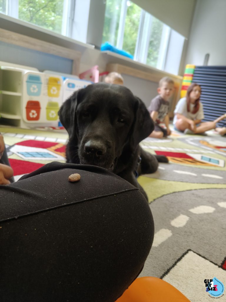 W drugim tygodniu wakacji nasze przedszkole odwiedził pies terapeutyczny Bueno wraz ze swoją opiekunką. Dzieci z całego przedszkola zostały zapoznane z pieskiem oraz dowiedziały się