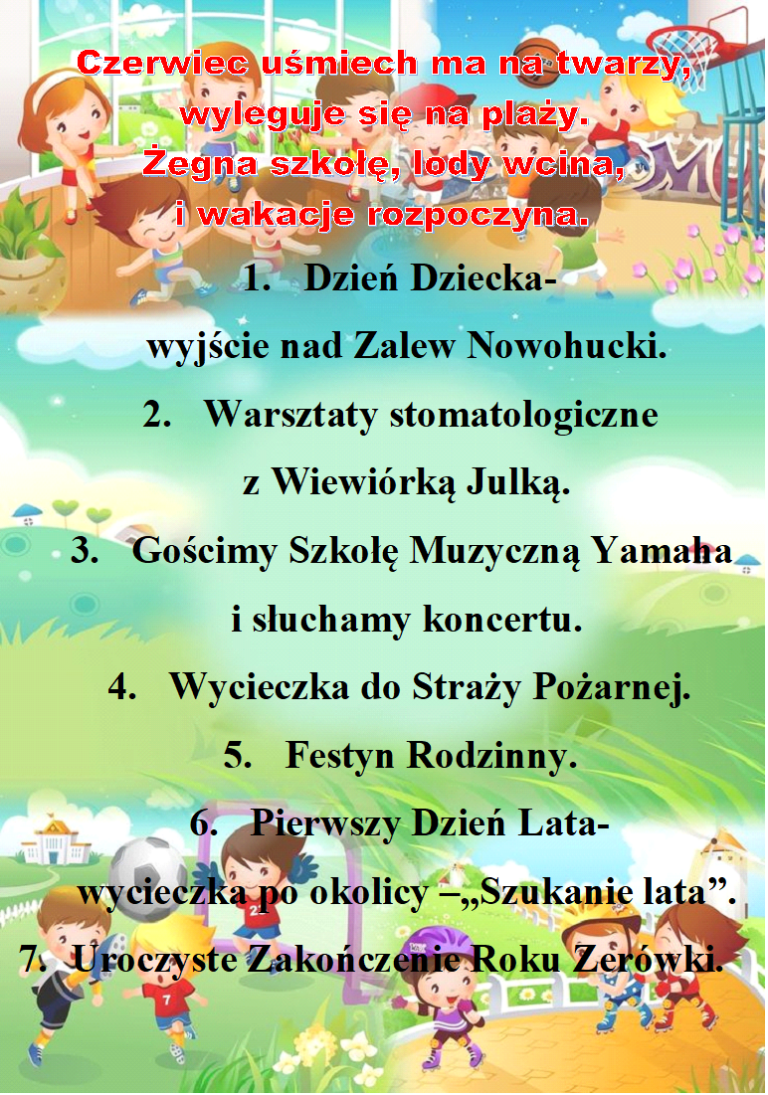 W poniedziałek, 23 czerwca, odbyła się uroczystość zakończenia roku zerówki. Dzieci rozpoczęły występ od uroczystego poloneza, który wzruszył wszystkich obecnych. Następnie zaprezentowały przygotowane wiersze, piosenkę